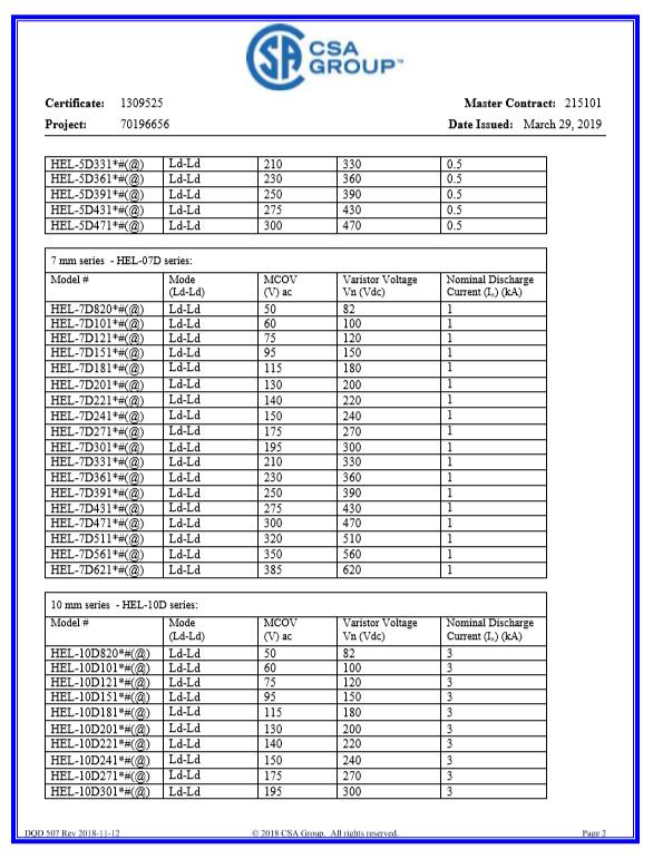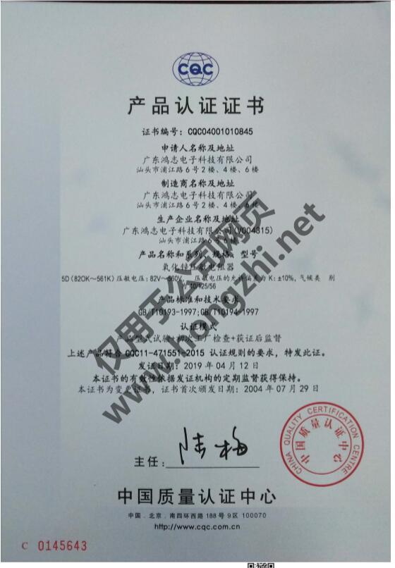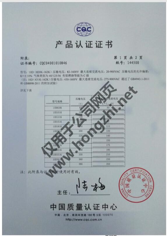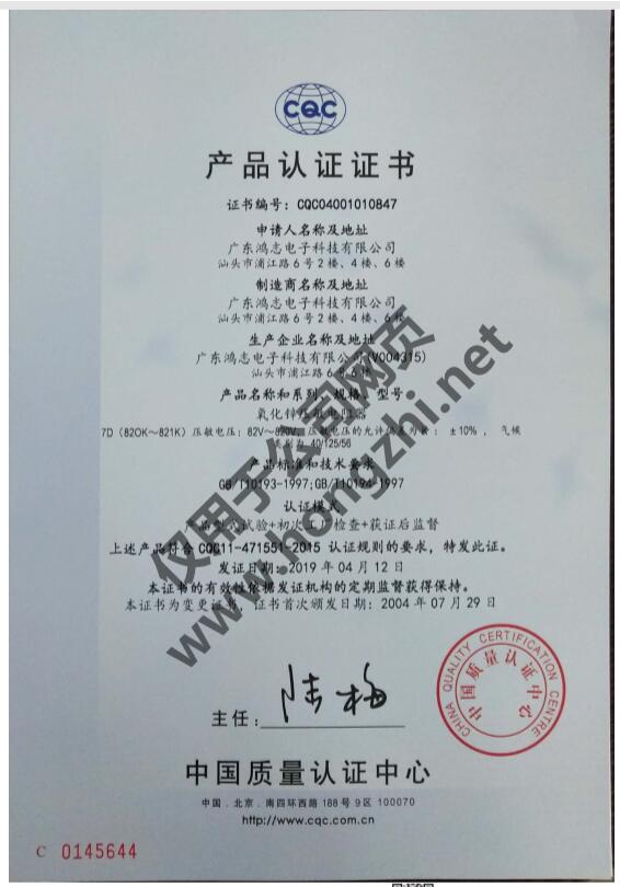 壓敏CQC-10D系列證書